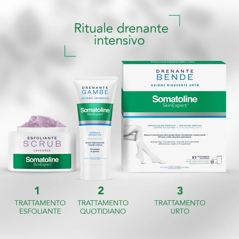 Somatoline Skin Expert Crema Drenante Rimodellante Gambe, Gel effetto ghiaccio studiato per snellire e levigare le gambe, appesantite da accumuli adiposi e ritenzione idrica.