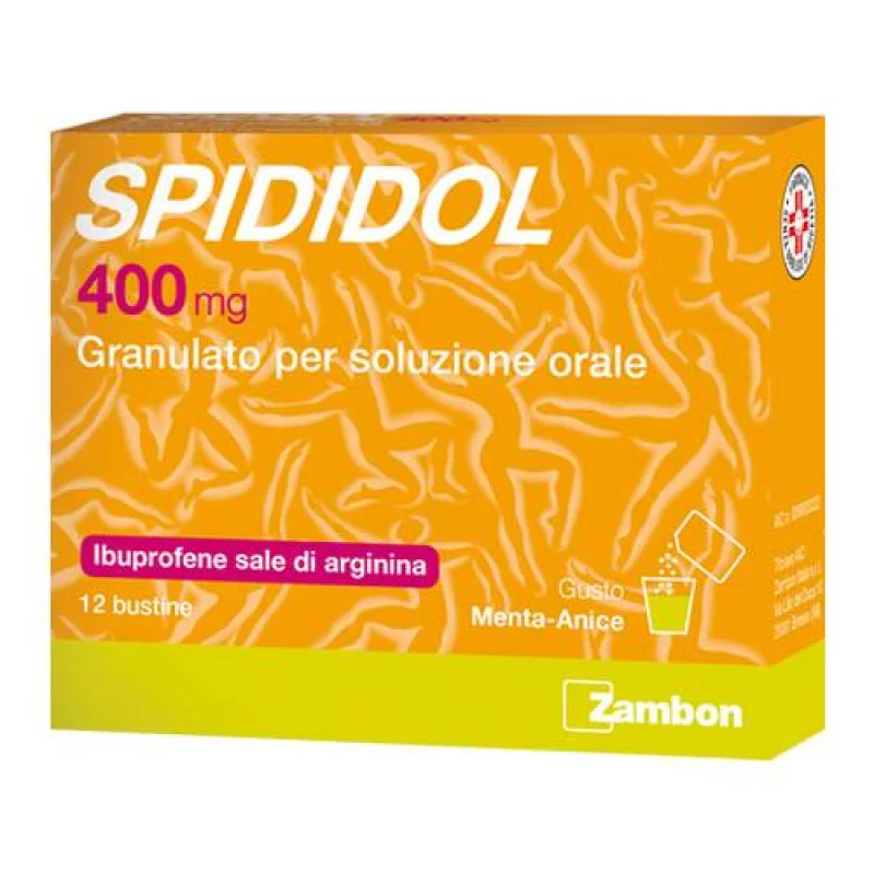 PosologiaAdulti e ragazzi oltre i 12 anni: 1 compressa rivestita con film o 1 bustina, due–tre volte al giorno. La dose massima giornaliera non deve superare i 1200 mg al giorno. – Anziani: I pazienti anziani dovrebbero attenersi ai dosaggi minimi sopraindicati. Nel trattamento dei pazienti anziani la posologia deve essere attentamente stabilita dal medico che dovrà valutare una eventuale riduzione dei dosaggi sopraindicati. – In pazienti con alterata funzionalità renale, epatica o cardiaca i dosaggi dovrebbero essere ridotti. – Insufficienza epatica: cautela deve essere adottata nel trattamento dei pazienti con funzionalità epatica ridotta. In tali pazienti è opportuno ricorrere al monitoraggio periodico dei parametri clinici e di laboratorio, specialmente in caso di trattamento prolungato (vedere par. 4.4). L’uso di SPIDIDOL è controindicato in pazienti con grave insufficienza epatica (vedere par. 4.3). – Insufficienza renale: cautela deve essere adottata nel trattamento di pazienti con funzionalità renale ridotta. In tali pazienti è opportuno ricorrere al monitoraggio periodico dei parametri clinici e di laboratorio, specialmente in caso di trattamento prolungato (vedere par. 4.4). L’uso di SPIDIDOL è controindicato in pazienti con grave insufficienza renale (vedere par. 4.3). In adolescenti (di età compresa ≥ 12 anni ai < 18 anni): nel caso l’uso del medicinale sia necessario per più di 3 giorni negli adolescenti, o nel caso di peggioramento della sintomatologia deve essere consultato il medico. Gli effetti indesiderati possono essere minimizzati con l’uso della dose minima efficace per la durata di trattamento più breve possibile necessaria per controllare i sintomi (vedere par. 4.4). Modo di somministrazione: La compressa deve essere deglutita con un pò d’acqua. Per pazienti con uno stomaco più sensibile si raccomanda l’assunzione con il cibo. Il granulato va sciolto in un bicchiere d’acqua (50–100 ml) ed assunto subito dopo la preparazione della soluzione. Il granulato per soluzione orale deve essere assunto con il cibo.