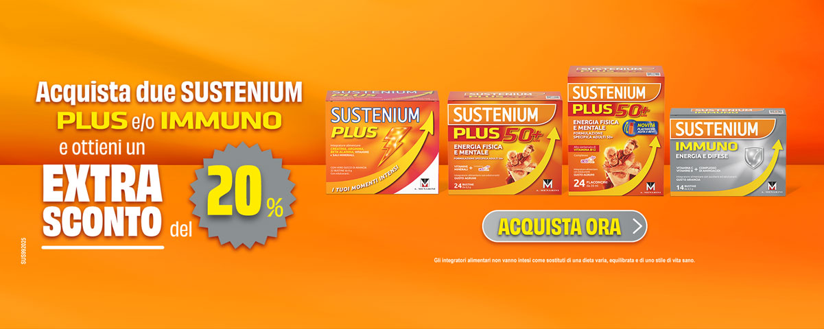 Dai energia alla tua energia: scegli la confezione di Sustenium Plus che preferisci, da oggi acquistandone due ricevi subito un extra sconto del 20%!