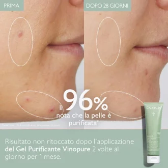 Caudalie Vinopure Gel Detergente Purificante è un gel rinfrescante che deterge e purifica la pelle senza seccarla grazie alla presenza di acido salico naturale, polifenoli d'uva ed oli essenziali bio.