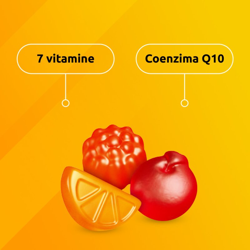 Integratore alimentare di vitamine specificamente formulato nei casi di ridotto apporto di vitamine con la normale dieta o di un aumentato fabbisogno fisiologico. Con coenzima Q10 e zucchero.