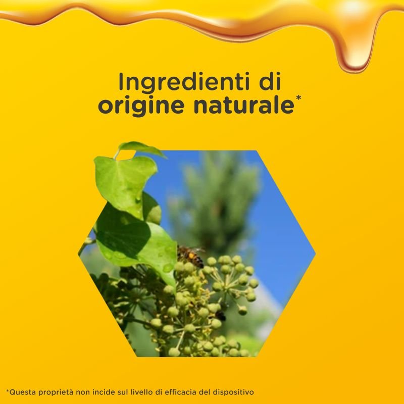 La sua composizione naturale sfrutta la presenza di Miele, estratto di foglie di Edera, Glicerolo per offrire triplice azione: